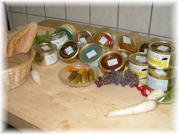 Hausmacher, Käse, Brühwurst oder alle drei, Braten mit Beilagen